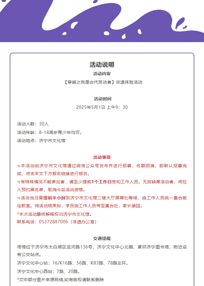 【活动招募】 穿越之我是古代劳动者非遗体验活动