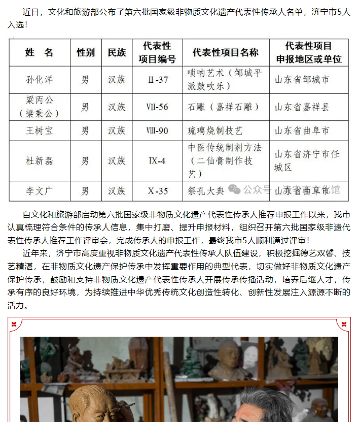 喜报!济宁市国家级非遗代表性传承人新增5人!