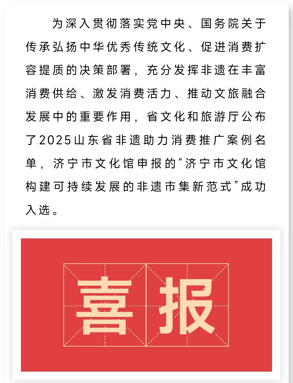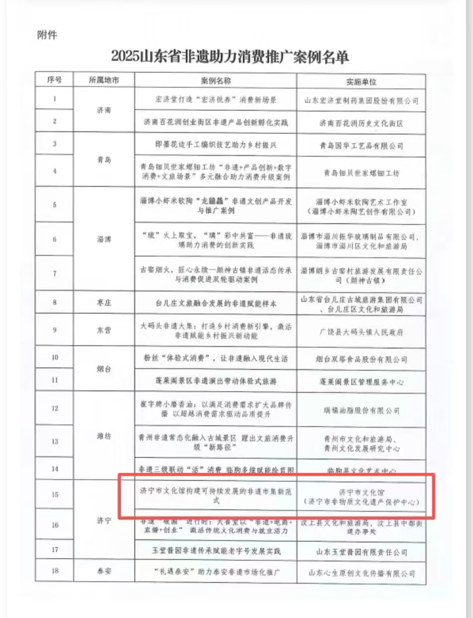 喜报!我馆1案例入选“2025山东省非遗助力消费推广案例名单”
